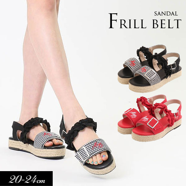 2020夏t【ALGY/アルジー】ニコプチ6月号掲載商品フリルベルトフラットサンダル≪20cm 21cm 22cm 23cm 24cm≫靴 サンダル 女の子 キッズ ジュニア 可愛い おしゃれ かっこいい スポーツサンダル≪店頭受取対応商品≫