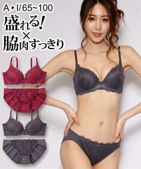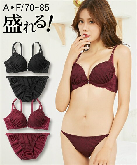 ブラジャー ショーツ セット レディース 花柄ジャガード× レース ピンク/ブラック E70_M〜F85_LL ニッセン