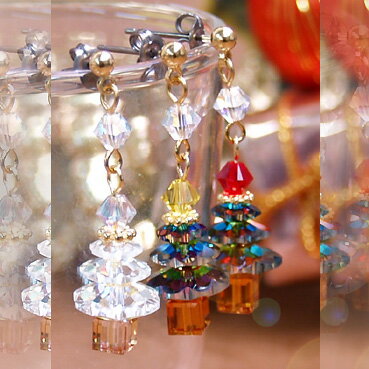 とってもキュート!耳もとで揺れるスワロフスキービーズで作ったキラキラクリスマスツリー。