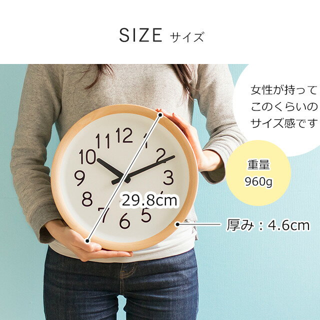 寸法 約 直径298mm×厚み46mm 重量 約 960g 材質 ブナ、ABS樹脂、ガラス ムーブメント ステップムーブメント 保証 1年保証有り 【p10】 シンプル ナチュラル な雰囲気が おしゃれ な 北欧 テイストの 木製 掛け時計 。