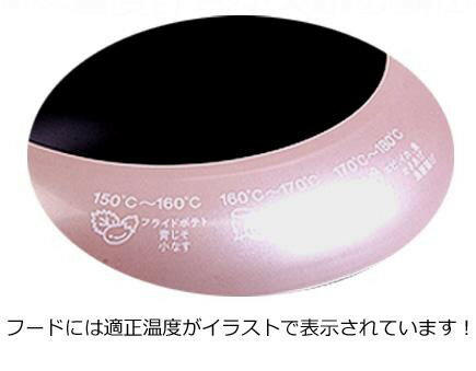 油はねを防ぐフード付きの温度計付天ぷら鍋です。