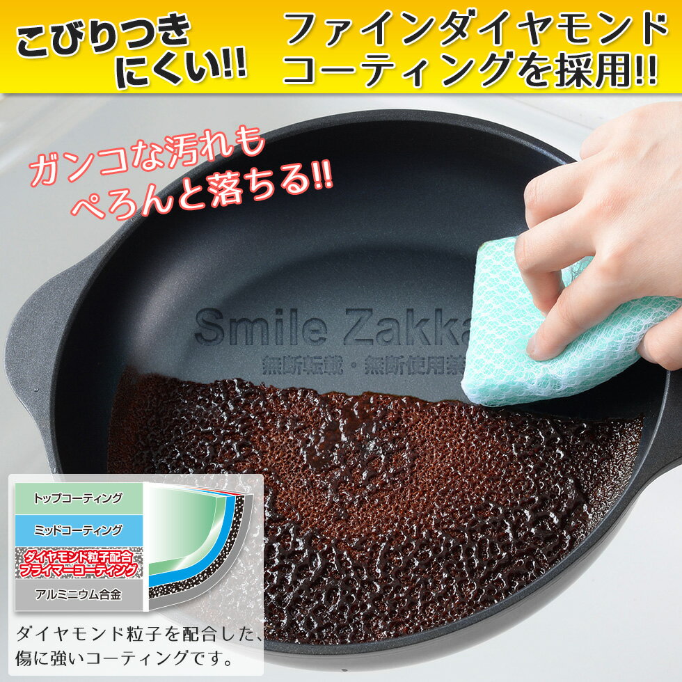 ファインダイヤモンドコーティングを採用していますので、 食材も焦げ付きにくくお手入れが簡単です。