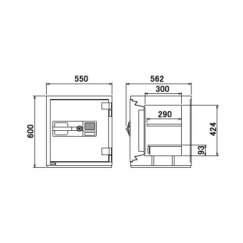 型式 テンキー式強化型耐火金庫(PC60T) 外寸 幅550×奥行き562×高さ600mm 内寸 幅390×奥行き300×高さ424mm 重量 130kg 内容量 50L 付属品 鍵2本・取扱説明書 装備 棚板1枚、鍵なし引出し1個、リロッキング装置 カラー ライトスモーク 性能 一般紙用2時間耐火試験合格(2時間で1010℃まで加熱し、庫内温度177℃以下で中に入れた新聞紙が判読可能) 耐工具15分間破壊試験合格<TS−15>(バール等の特定工具で15分間、扉をこじ開けられません) 急加熱・衝撃落下併用試験合格(急加熱し9.1mの高さから落下させても、金庫の破裂が起こらず施錠できている) 開錠方法 暗証番号+鍵 設定可能な暗証番号桁数 4桁〜12桁 電源 単三アルカリ乾電池×4本※使用状況により異なりますが、1年に1回の交換をお薦めします。