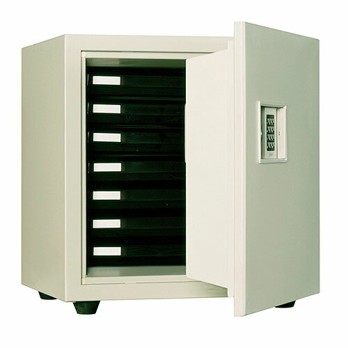 ■基本仕様 ■型式:テンキー式2時間耐火金庫(KMX-33E-FA) ■外寸:幅500×奥行き473×高さ528mm ■内寸:幅348×奥行き245×高さ354mm ■重量:92kg ■内容量:33L ■付属品:トレー7枚(幅333×奥行き228×高さ42mm) ■色:オフホワイト ■性能:一般紙用2時間耐火試験合格、急加熱・衝撃落下併用試験合格、アラーム付 ■開錠方法:暗証番号のみ ■設定可能な暗証番号桁数:4桁〜8桁 代金引換不可 ※耐火金庫はメーカー直送の為、「代金引換」が出来ません。