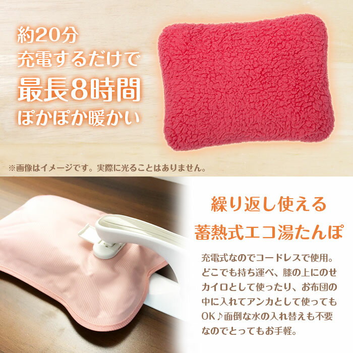 ◇ 蓄熱もこもこ湯たんぽ 説明 ◇ ● 約20分充電するだけで最長8時間ぽかぽか暖かい、繰り返し使える蓄熱式湯たんぽです。