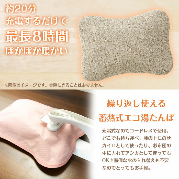 ◇ 蓄熱ぽかぽか湯たんぽ 説明 ◇ ● 約20分充電するだけで最長8時間ぽかぽか暖かい、繰り返し使える蓄熱式湯たんぽです。