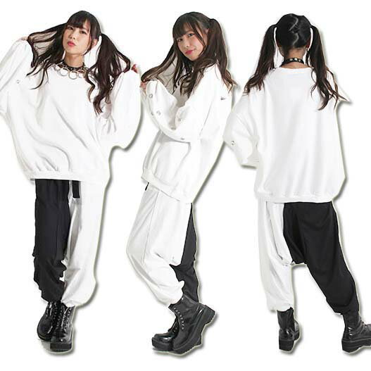 全身モノトーンでキメても、派手コーデのポイントにも◎! レッスン着として、イベント衣装・ダンス衣装にもおススメ! お好みのシルエットにもよりますが、たっぷりのラインで普段レディースMサイズ-XLサイズ位の方からメンズ(Mサイズ位まで)、幅広ーく着用OK☆