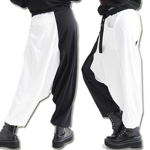 ユニセックス☆ベルト付き モノトーン配色 スウェットサルエルパンツ Drug Honey ドラッグハニー ダンス 衣装 ダボパン ヒップホップ ロングパンツ ジャージ ダンサー ブラック ホワイト 黒白 白黒 無地パンツ 男女兼用 大きいサイズ B371